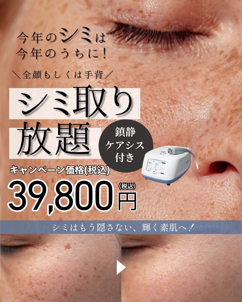 福岡で「シミ取りをしたい」「シミ取りを安く受けたい」とお考えの方に朗報です✨ Luxe Beauty Clinicでは、【全顔もしくは手背】のシミ取り放題プランを、10月末まで期間限定でお得にご提供いたします。